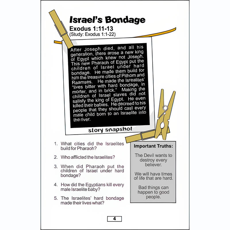 Whether it is for a family to use in family altar or a teacher to follow in a classroom setting. “Bible Story Snapshots” can be a helpful tool. Christians will benefit from this book by becoming more familiar with Bible stories, by answering the thought provoking questions, by reading the study passages listed, and by dwelling on the truths given for each one. Zoom in for a closer look at the snapshots of these Bible stories.