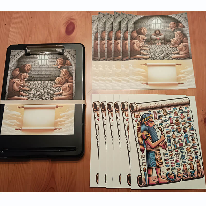 10 visuals of Daniel in the lions’ den (with hieroglyphics on the reverse).