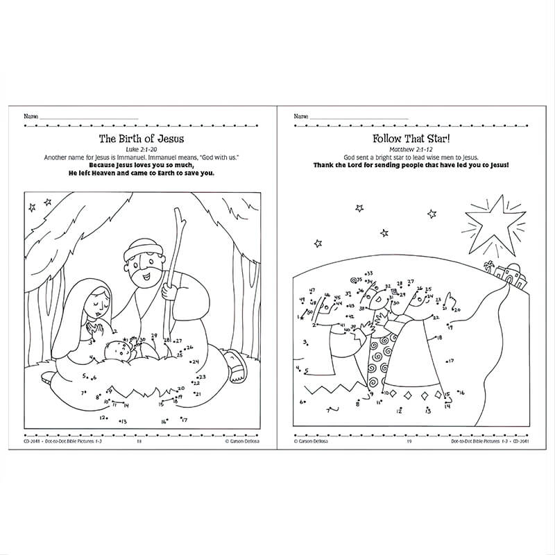 Bring Bible stories to life with the Dot-to-Dot Bible Pictures Activity Book for grades 1–3. This engaging 32-page workbook helps children connect to God’s Word through interactive dot-to-dot puzzles that reveal scenes from both the Old and New Testaments. As kids complete each picture, they’ll also encounter a meaningful Scripture reference and a short, encouraging lesson that reinforces the story.