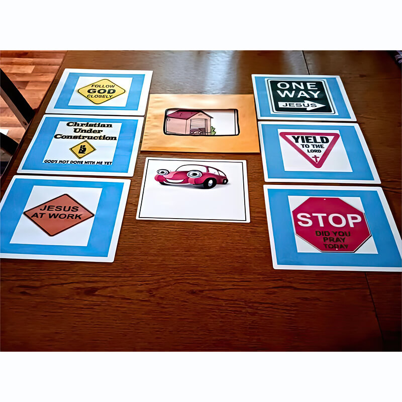 Another crowd-pleaser from Ray (Nodder) Franklyn! You show a car with no license plate and introduce six road-sign cards. After explaining each sign, you turn them around to reveal witty, personalized “plates.” The cards are mixed and a seventh helper calls out a number from 1–6—when that card is turned over, its plate matches the license now on the car that’s been visible in the envelope’s window the whole time. Big reactions, clear Gospel tie-in about choosing God’s way, and a surprise ending kids remember.